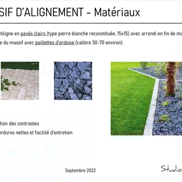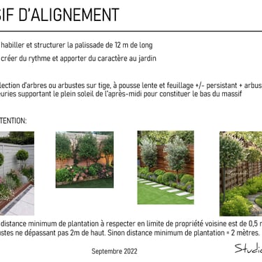 > Installer des massifs graphiques et persistants autour de la terrasse.