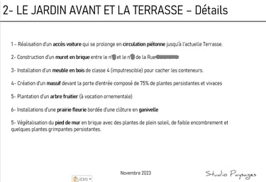 Extraits d'un dossier d'étude paysagère pour la création d'une terrasse :