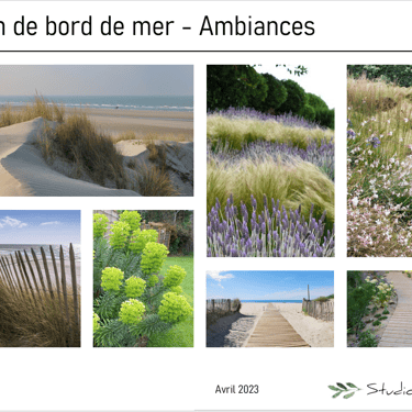 > Des éléments forts pour rappeler la thématiques sont introduits dans le projet : création de buttes de terre au centre des massifs pour apporter un effet "dunes", installation de ganivelles décoratives de 50cm de hauteur pour rappeler les barrières de dunes, installations de graminées hautes et de vivaces graciles pour créer du mouvement et apport de paillage de chanvre pour éclaircir le sol et lui donner un aspect sable.